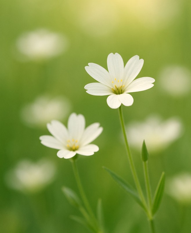 小ぶりで光を柔らかく反射する繊細な花は、セラスチウム(Cerastium)ナデシコ科の小花をイメージしています。白は「純粋さ」「受容」「調和」の象徴。特定の主張や色に染まらず、すべてを受け入れる“余白”の色です。「他人の正解を尊重する」「正解はひとつじゃない」という思想を可視化しています。